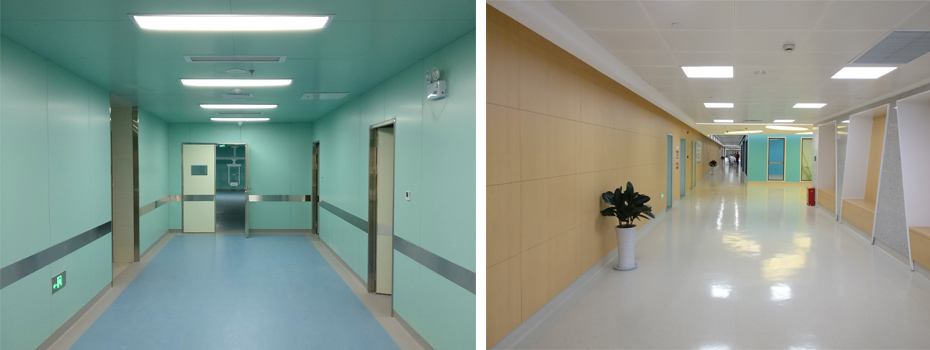 用于醫(yī)院候診大廳、走廊、護(hù)士站、實(shí)驗(yàn)室、化驗(yàn)室、藥房等內(nèi)部裝飾 ,采用粘貼法固定。