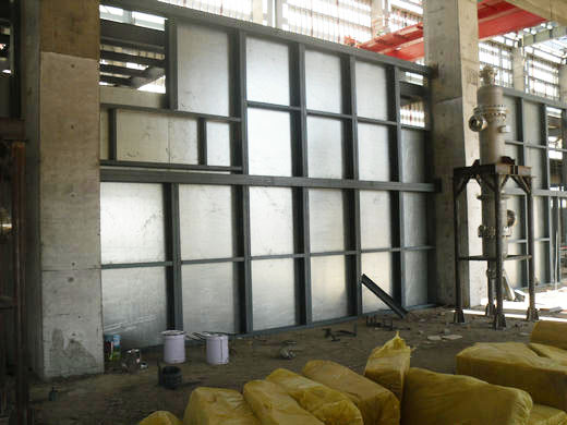 并在骨架中間填充巖棉。保溫型抗爆墻耐火極限可達(dá)4小時(shí)。