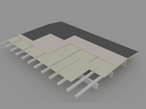 我公司生產(chǎn)的纖維增強(qiáng)水泥板泄爆屋面板,采用雙層9mm防爆泄壓板做屋面板,用方管做檁條,用自攻釘把泄爆板固定在檁條上,上面做防水與保溫即可。